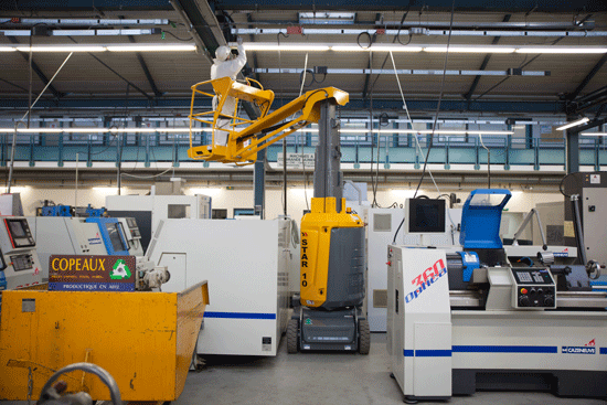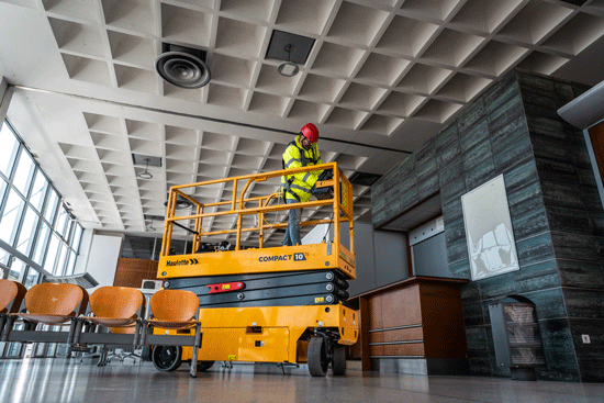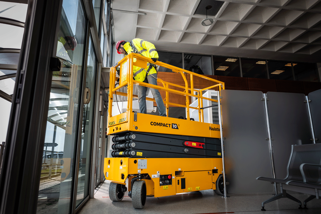 Le piattaforme a forbice compatte o i sollevatori a colonna sono soluzioni ideali per gli spazi ridotti. Le loro dimensioni contenute facilitano le manovre in aree limitate. Sulla gamma COMPACT di Haulotte, è possibile ripiegare i parapetti per attraversare porte basse, una caratteristica particolarmente utile per lavori in ambienti interni con applicazioni specifiche.